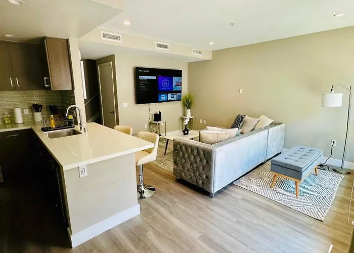 広々とした126m²のHollywood Townhome, Resort Amenities, 2 Free Parking Spaces! ロサンゼルスはテラスがあり、ラブレアアベニューから500メートルの場所に位置しています。 グリフィス天文台は寝室2室のアパートから4.8kmで、サンセット・ブールバードから車で10分くらいです。
